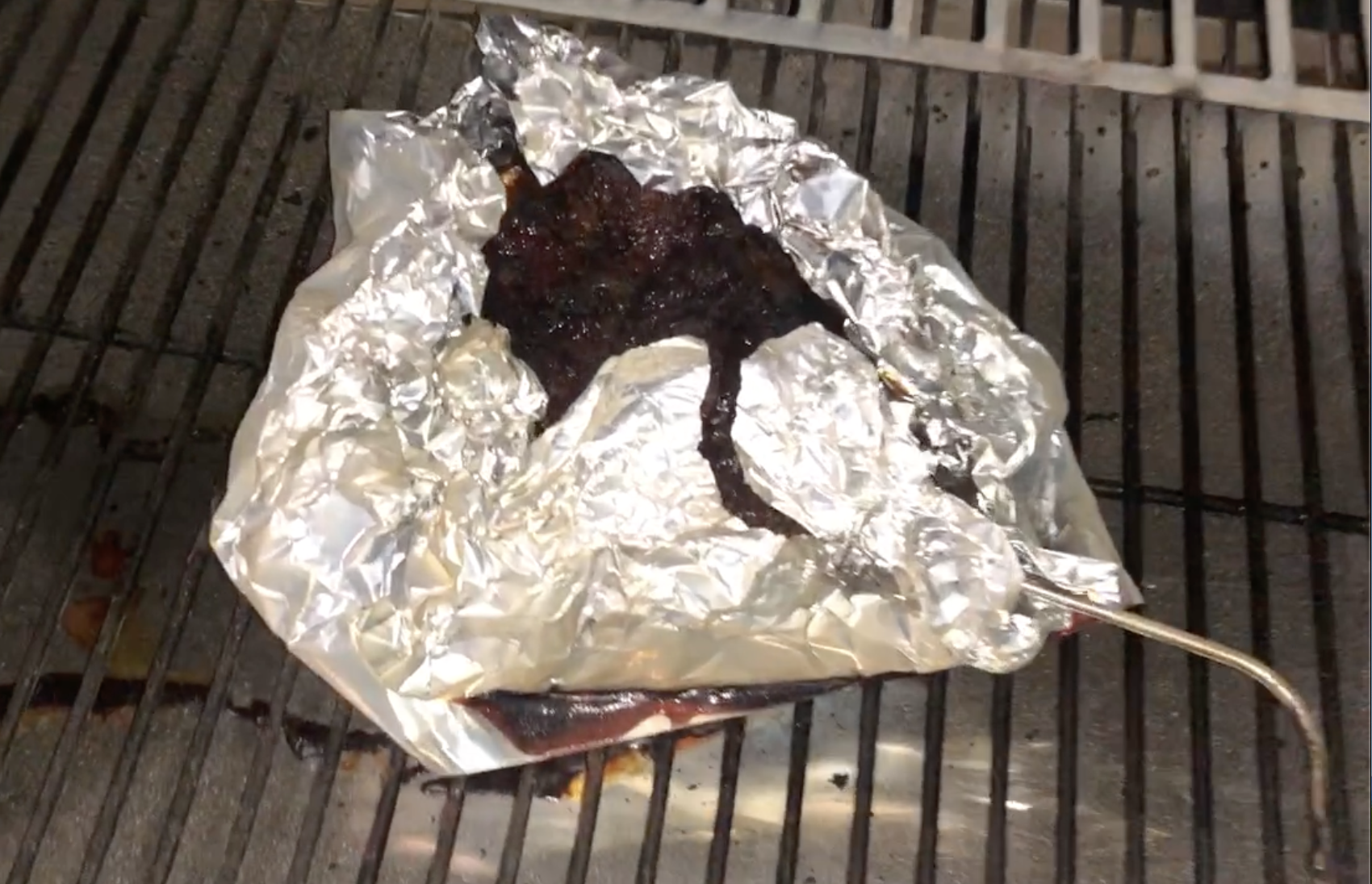 Wrapping: You can wrap the meat in aluminum foil or butcher paper. I have only ever had aluminum foil on hand, although I would like to try butcher paper soon to avoid the aluminum on the food. I choose to do the “Boat Method”. This is when you layer some aluminum foil and curve up the edges, leaving some of the top exposed, so it looks like your brisket is in a boat. See my instagram video and picture below for visual! *ADD LINK